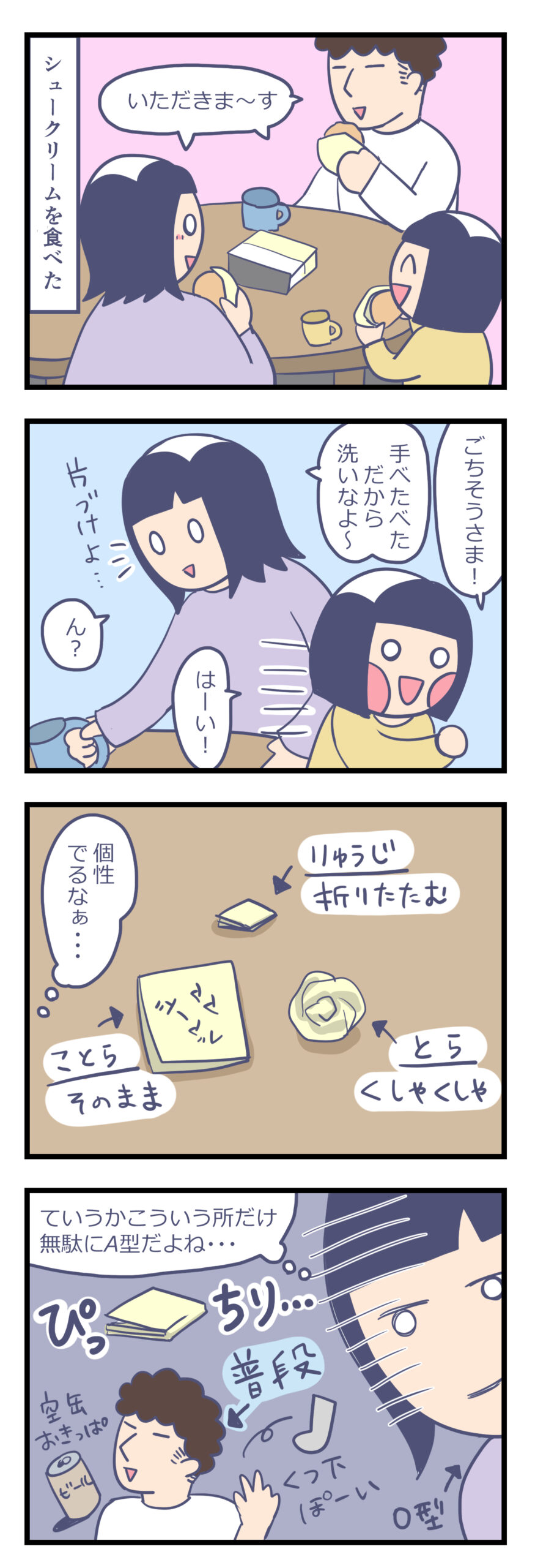 A型のイメージってきっちり、ぴっちり、正確にってイメージだったんですが、りゅうじは後片付けに関することはホントにテキトーで!!