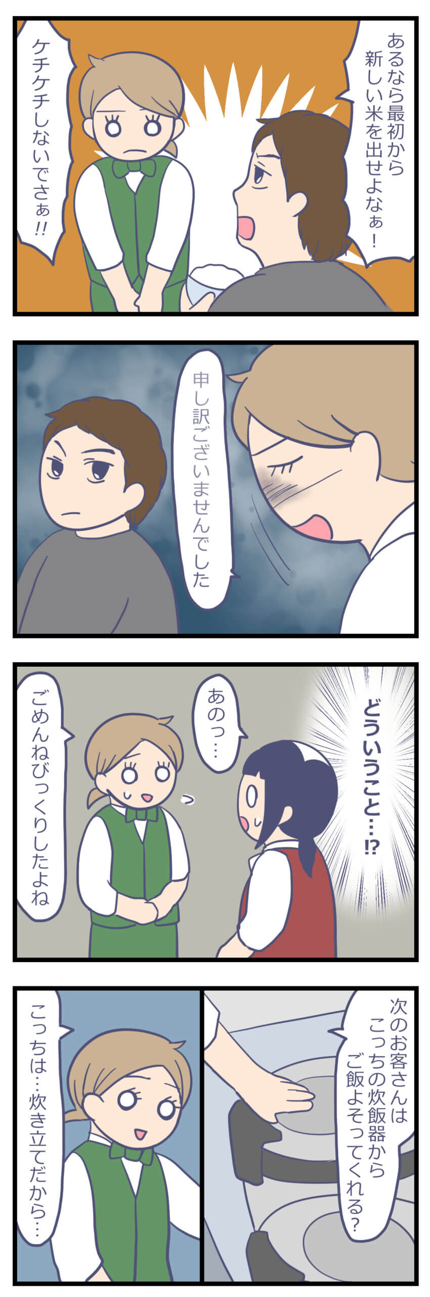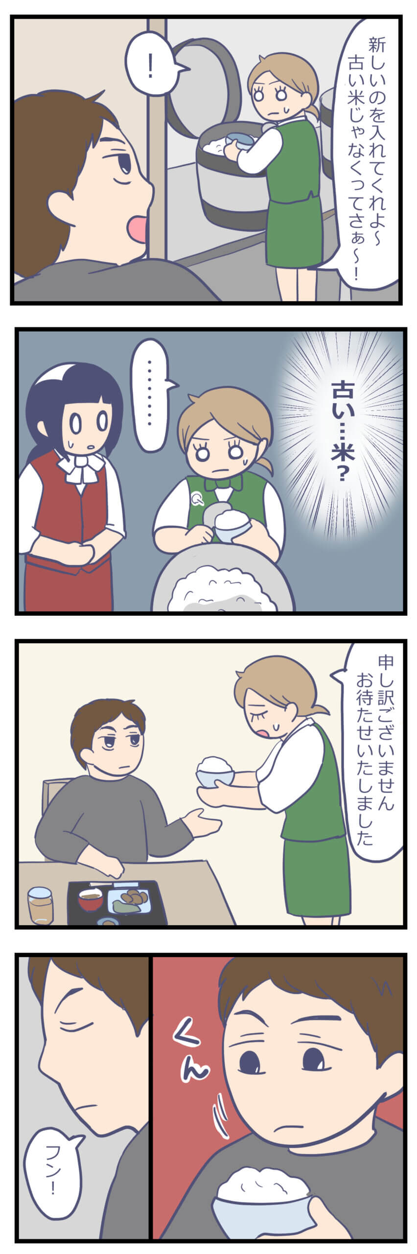 古い米ではなく新しい米を入れろと主張するお客様。