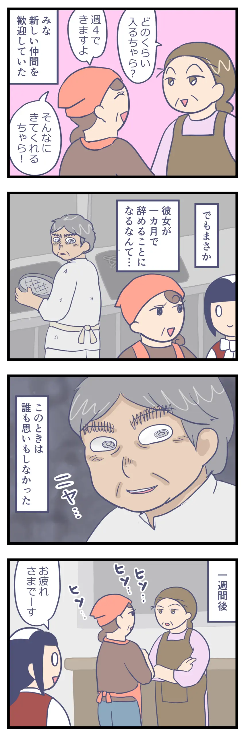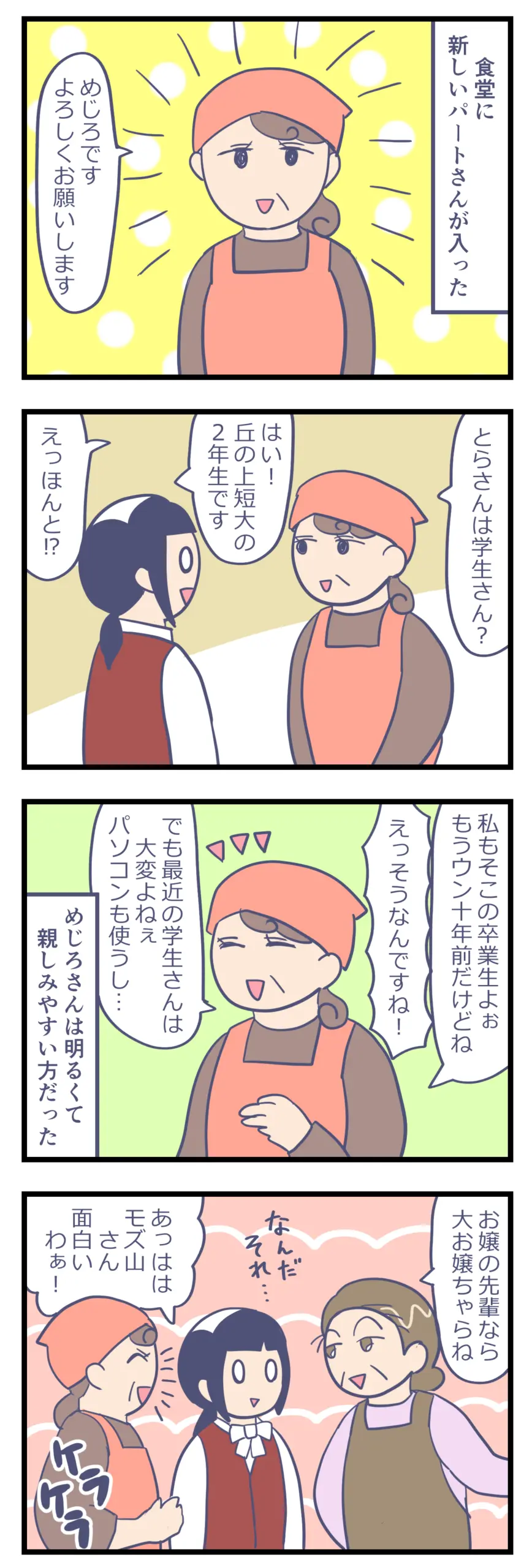 アルバイト先のボロホテルがやばかった㊾ 日常漫画 X Facebook LINE コピー 2025.12.18 新しく入ったパートのめじろさんは明るくて話しやすく、モズ山さん達ともすぐに馴染んでいました。 私の通っている大学の先輩ということもあって、私も親しく話をさせてもらっていました。 けれどしばらくすると、ひそひそと話をするモズ山さんとめじろさんを見かけるようになりました。2人は一体なにを話しているのか…??