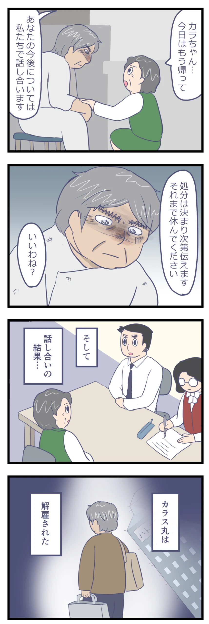 アルバイト先のボロホテルがやばかった(60) 体験談連載漫画 X Facebook LINE コピー 2026.01.29 ついにカラス丸が解雇されました。 長年務めたにも関わらず、なんとも恥ずかしい去り方… いったいいつからこんなに不真面目になってしまったんでしょうか? 料理人がいなくなったハトホテル。 これからどうしていけば良いのでしょう…