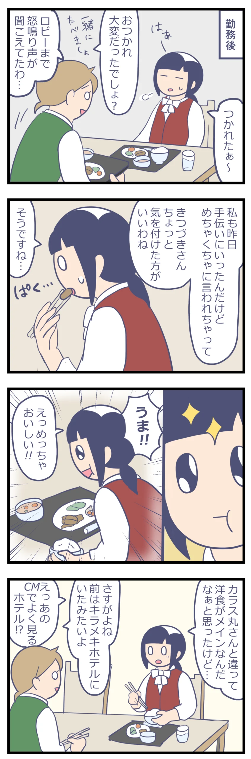アルバイト先のボロホテルがやばかった(65) 体験談連載漫画 X Facebook LINE コピー 2026.02.16 なんと料理はめちゃくちゃ美味しかった!なんか見た目もオシャレな感じなんですよね。 料理が違うから使うお皿も前と違ったりして、こんなオシャレなお皿もあったんだ!初めて見た! って感じで驚くことも多かったです。