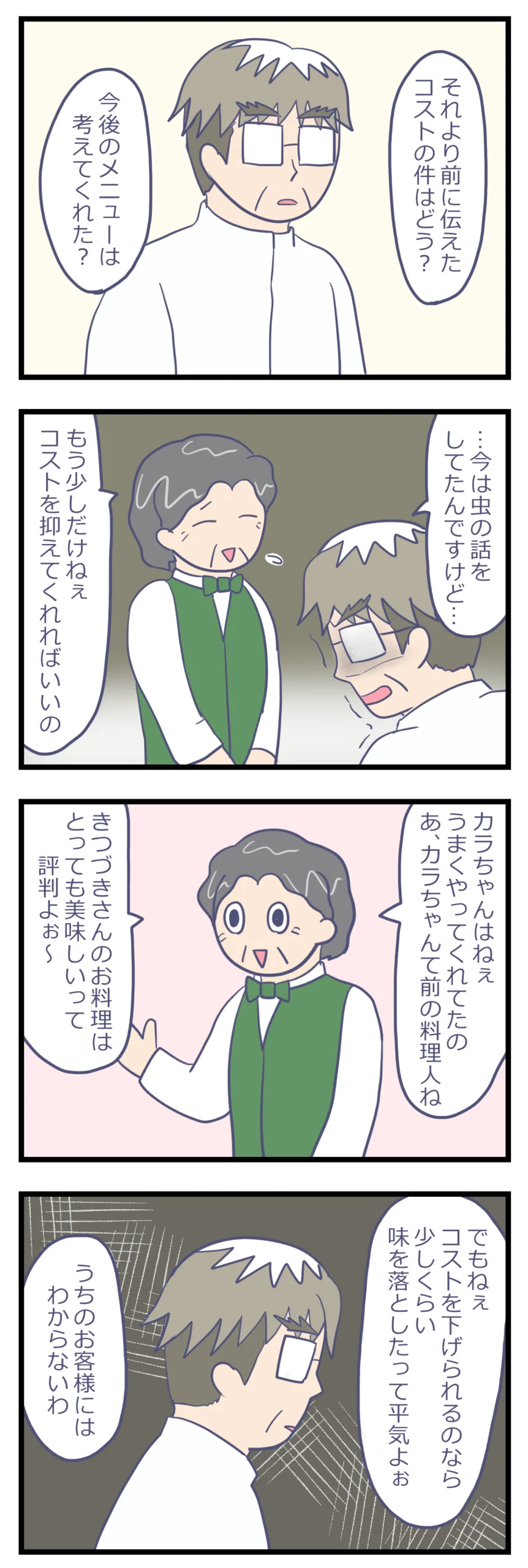 アルバイト先のボロホテルがやばかった(69) 体験談連載漫画 X Facebook LINE コピー 2026.03.02 味の善し悪しよりもまずコストダウン。 それも大事なことだとはわかっていますが、こんなにもハッキリと言われてしまったら、料理人はどう思うのでしょうか…