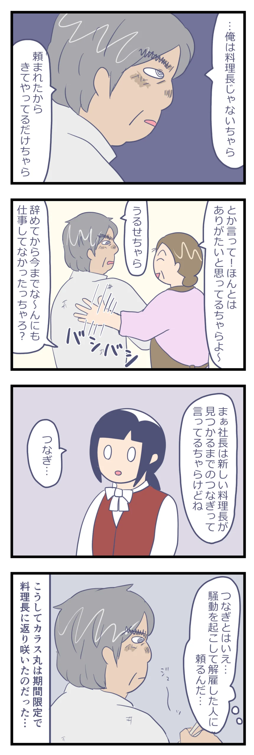 アルバイト先のボロホテルがやばかった(72) 体験談連載漫画 X Facebook LINE コピー 2026.03.12 きつづきさんは1か月ほどで辞めてしまいました…。短かったので私も数えるほどしか会っていないのですが、あの性格ゆえ、強烈に印象に残っています。 そして突然出て行ってしまったきつづきの代わりを務めたのが、飲酒、暴力沙汰で解雇されたカラス丸!! たしかにそこしか頼る人がいないのも分かるけど…でもまじかよ~って感じでした…