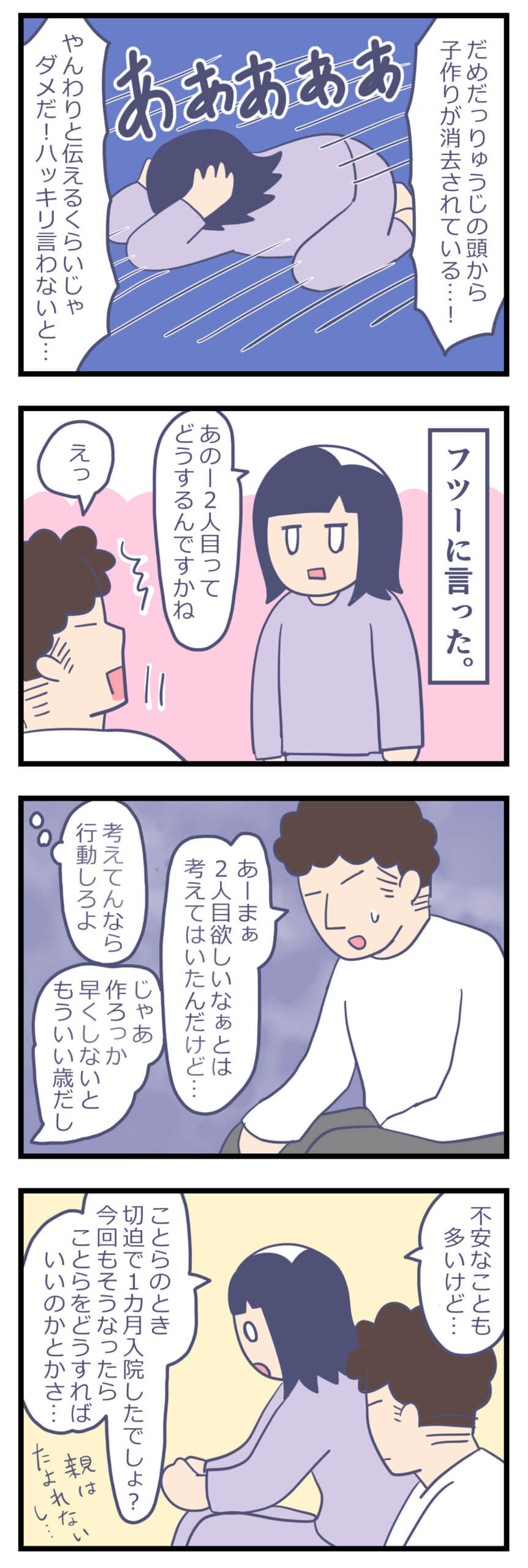 そもそも妊娠できるのかわからないし、高齢出産になることや、入院した場合ことらをどうするかなど…