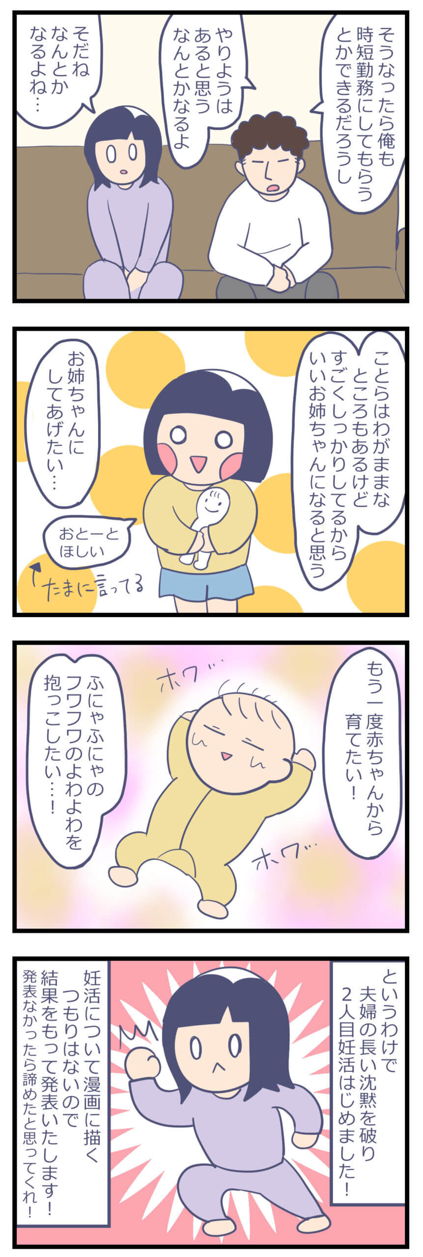 でもきっとやってみればなんとかなるんだと思います。実際にみんな、大変な思いや不安の中2人目、3人目と出産しているのでしょう。