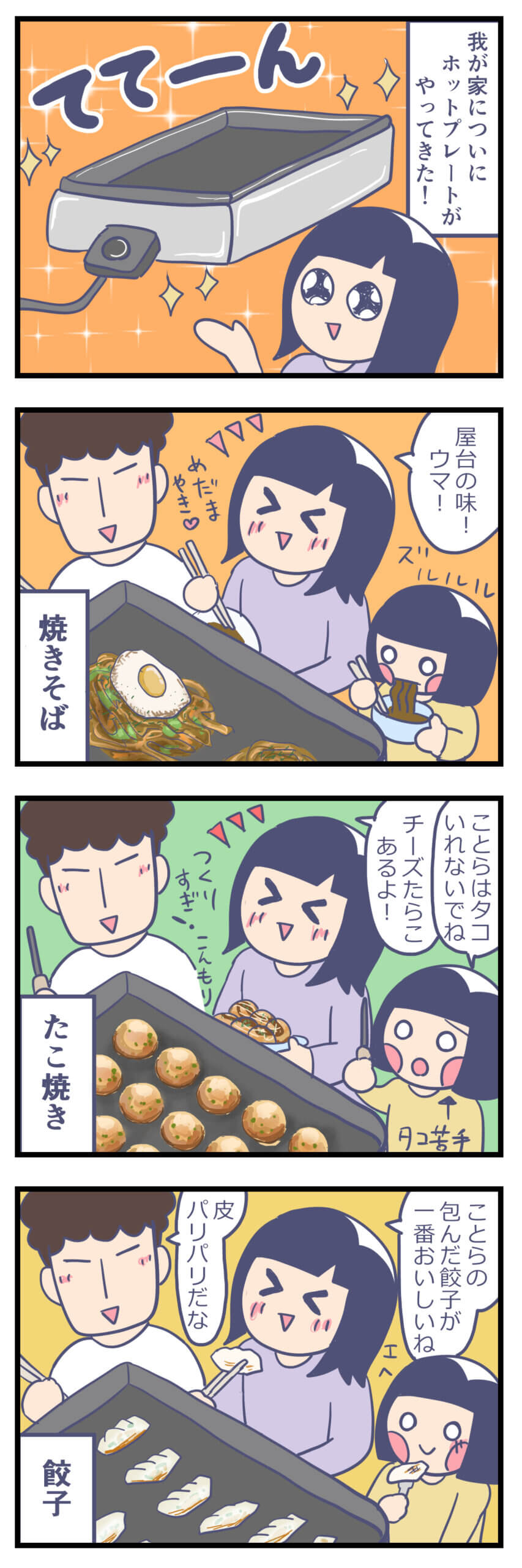 ホットプレート,たこ焼き用,焼肉用の3種類ついてます。