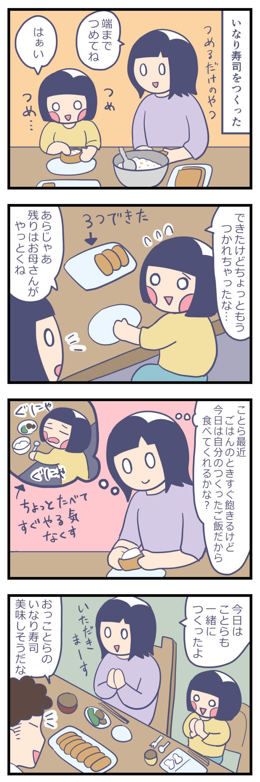 少しでも楽しく食べれたらいいなぁと思い、手で食べられるいなり寿司を一緒に作ることにしました。