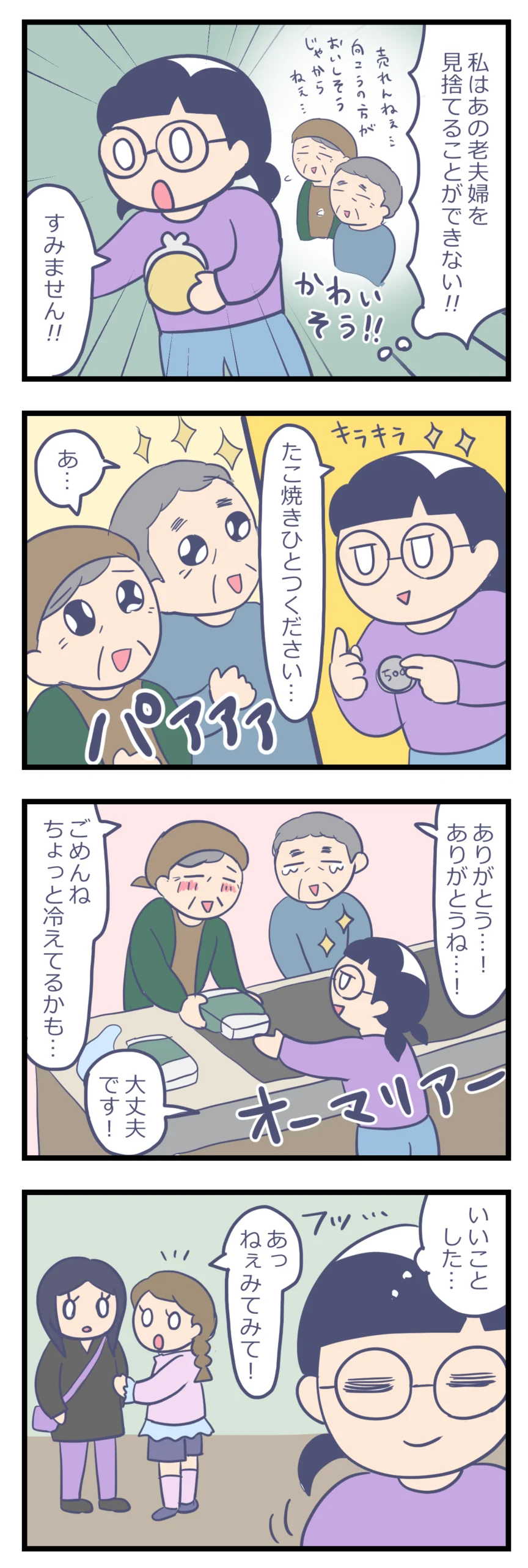 屋台のたこ焼きおじさんとおしゃべり。子どもの可愛さに口元がゆるんだおじさんは大変なことに…!?
